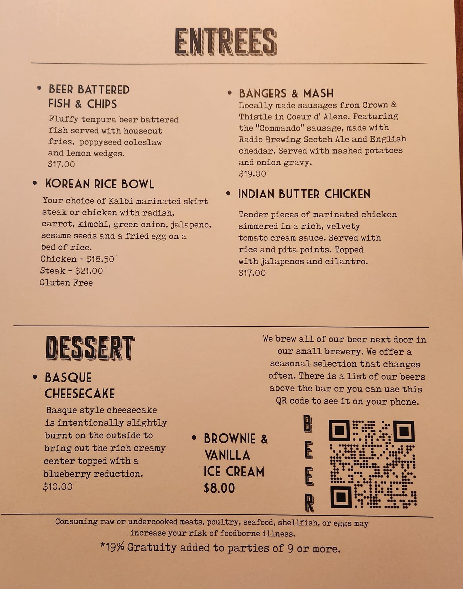 See our website for more on our list of brews and menus Brewing Company